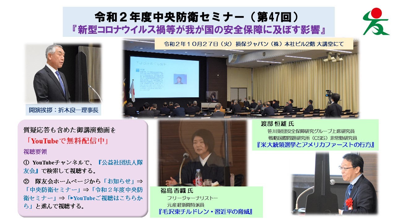 ●第47回防衛セミナー(東京):令和2年10月27日※YouTube配信開始11月10日