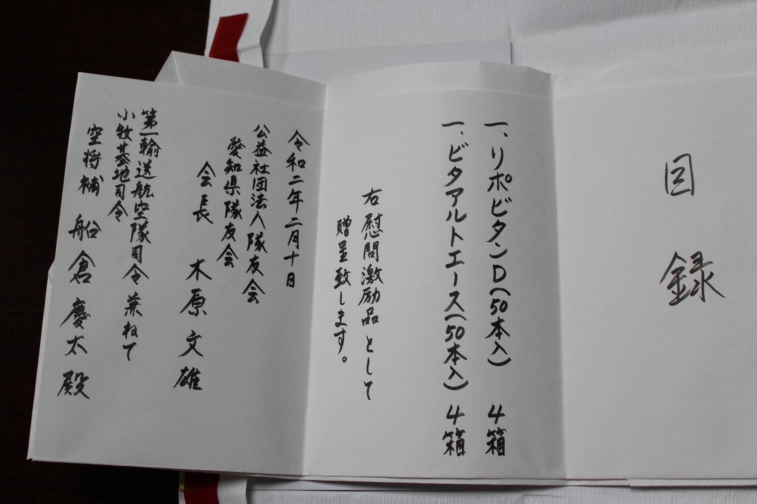 なお、C-2輸送機部隊にも後日激励品を贈呈する予定である。