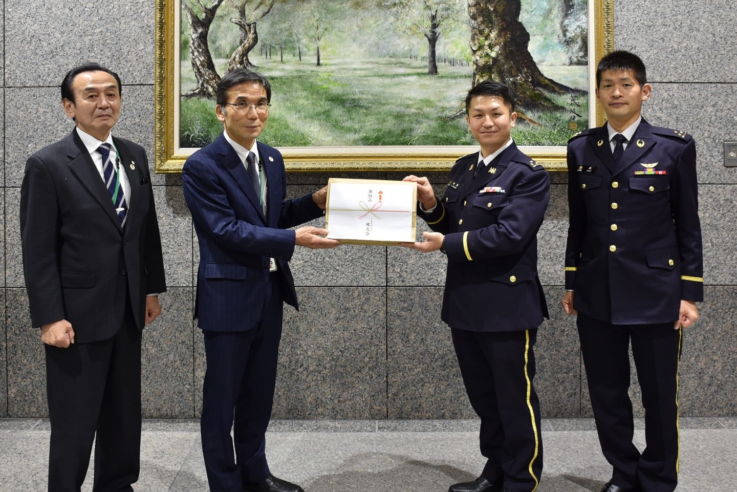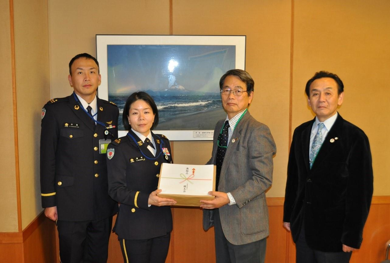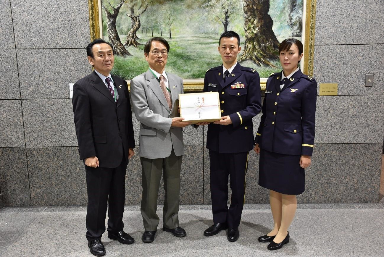 平成30年12月19日(水曜日)、国連南スーダン共和国ミッション司令部要員の陸上自衛官2名(3等陸佐宮本綾子・兵站幕僚、1等陸尉中島大貴・航空幕僚:陸上総隊司令部所属)に植木事務局長より激励品を手交した。