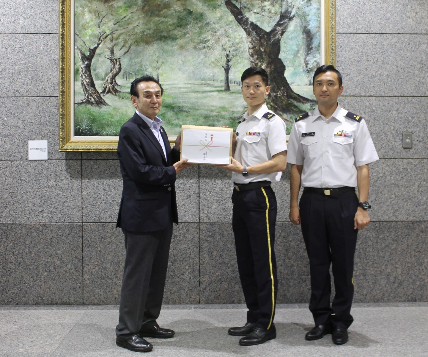 令和3年8月3日、国連南スーダン共和国ミッション(UNMISS)に国際平和協力隊第13次司令部要員として1年間派遣される2名(有薗光代3等陸佐=施設幕僚、原田寿幸1等陸尉=情報幕僚)に山本公益課長から激励品を手交した。