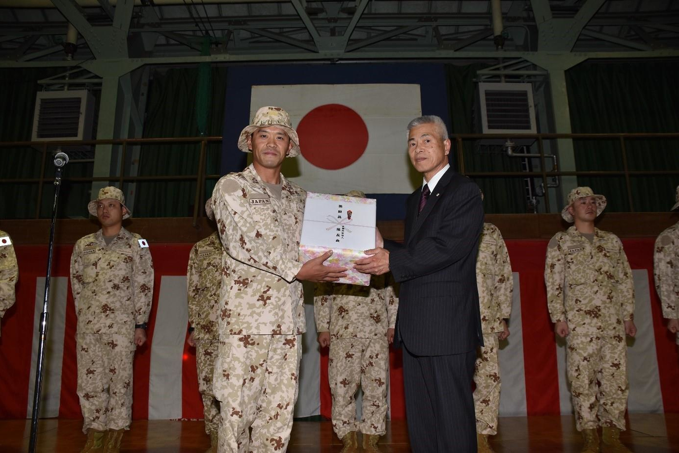 警衛隊は、今後、異国の地で、日本とは比較にならない酷暑の厳しい環境の中での約6カ月間の任務遂行となるが是非、困難を克服し派遣任務を完遂して、無事の帰国を