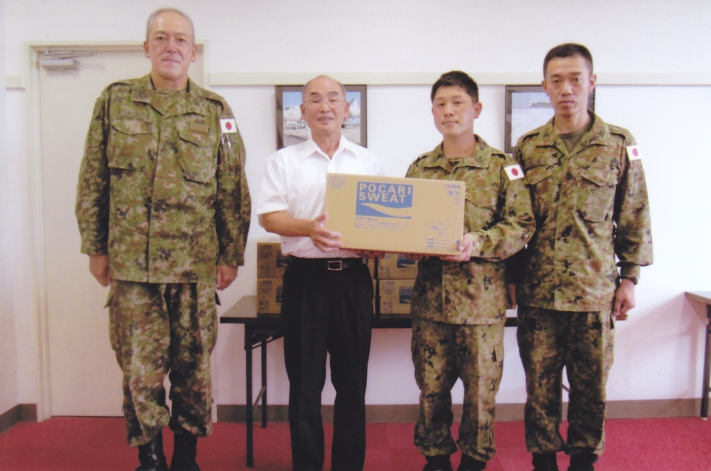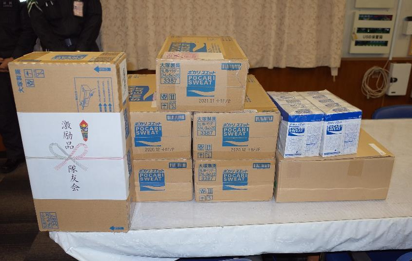 これに先立つ4月2日(火)、青森県隊友会長代理として小笠原三八地域支部長が、安納司令を訪れ、任務の完遂と無事の帰国を願い激励品(粉末スポーツドリンク)を贈呈した。
