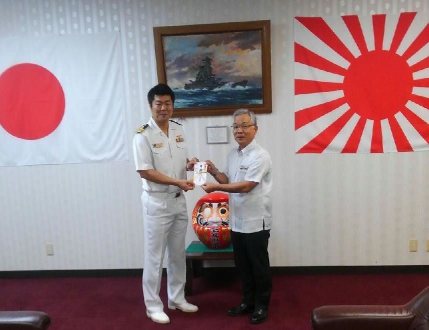 また、6月30日、沖縄県隊友会( 会長・平田喜彦)の中原誠事務局長は、那覇航空基地にある第5航空群司令部を訪れ、第44次派遣海賊対処行動航空隊に対する激励品を手交した。