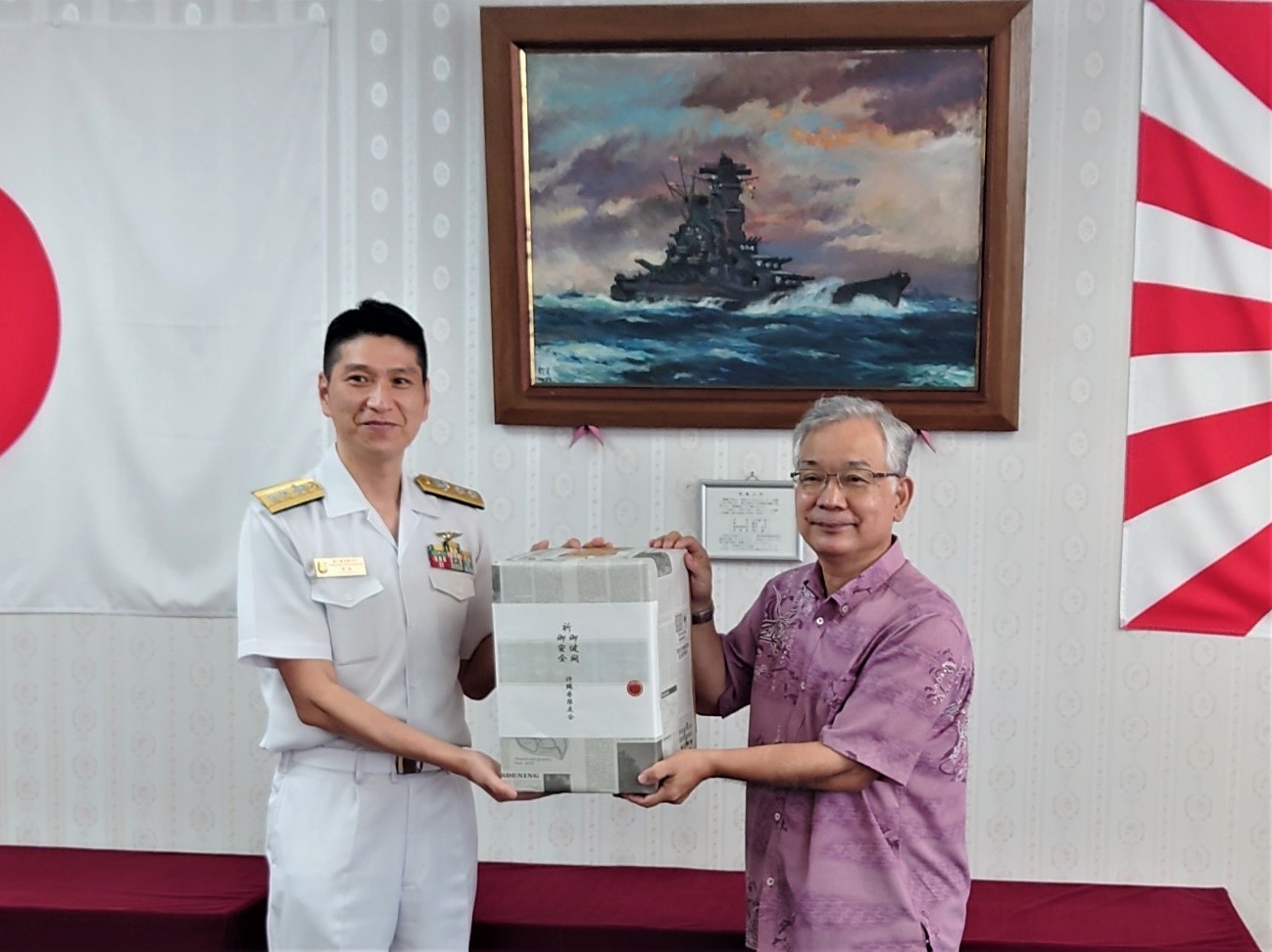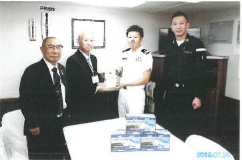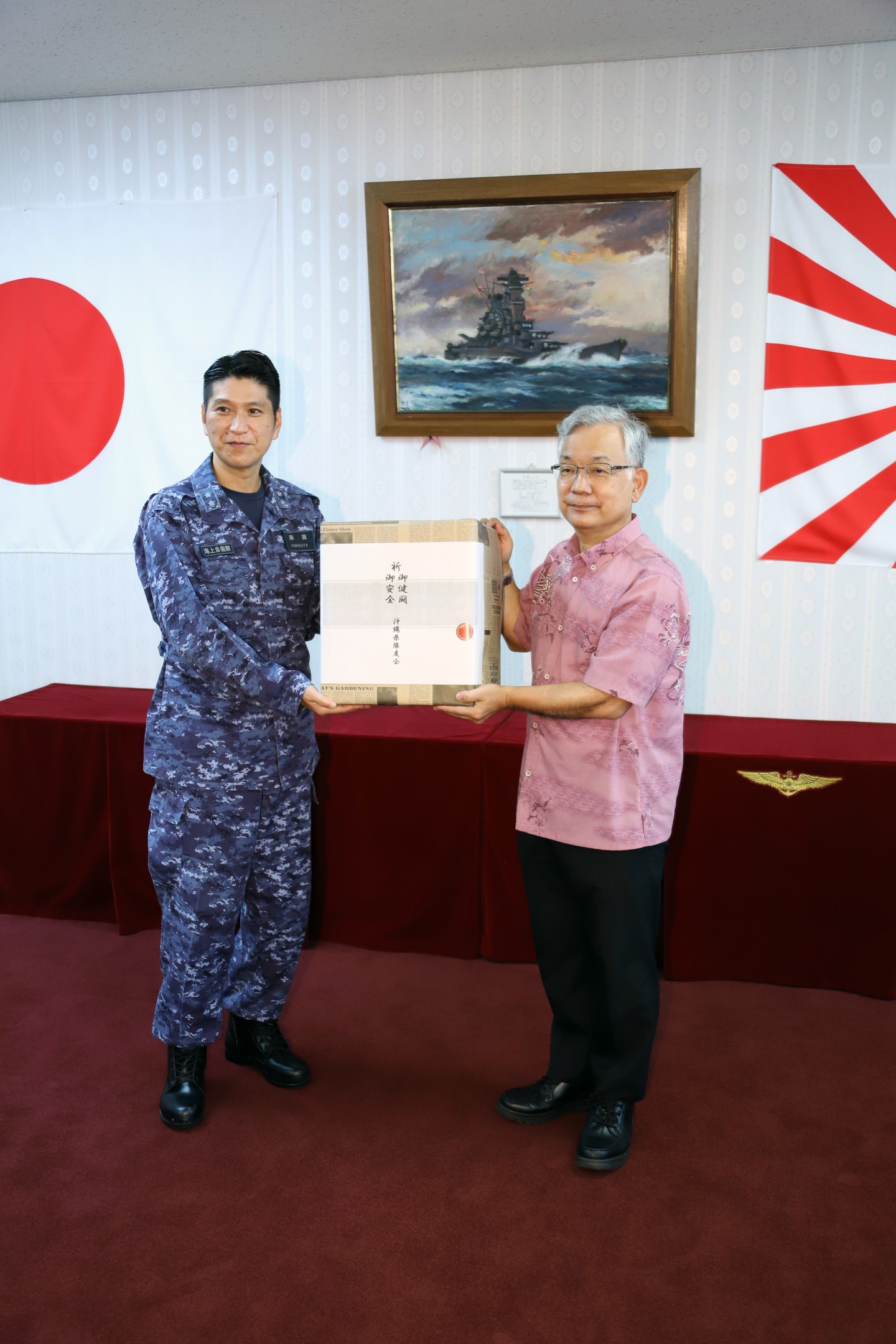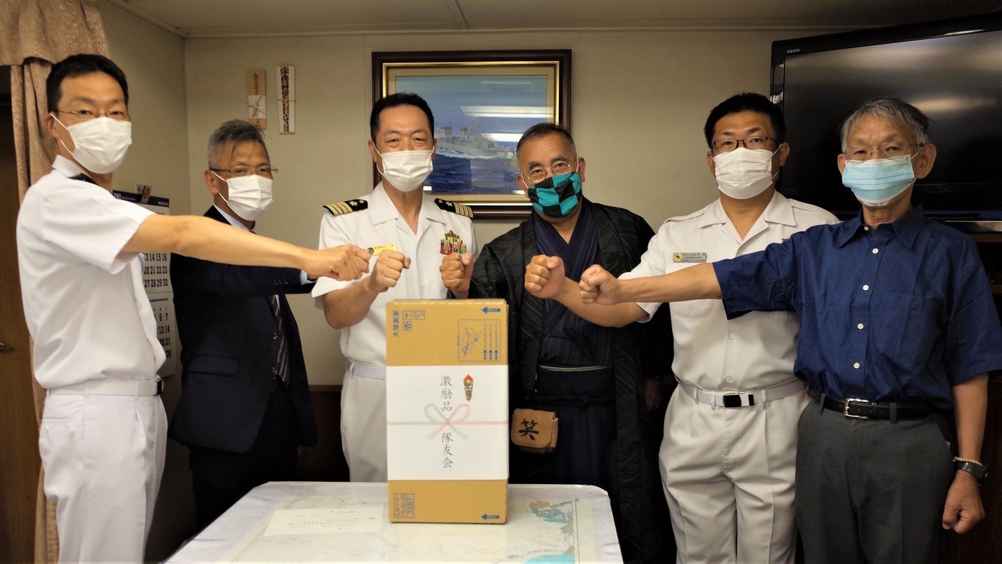 田中艦長は、「炎天下厳しい環境において活動する隊員にとって、このような激励品は一番の励みになります」と感謝を述べた。「いかづち」のご安航と任務の達成、隊員全員の無事の帰国を心から祈念する。(横須賀支部長・濱田暢喜)