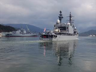 9月17日、第43次派遣海賊対処行動水上部隊(情報収集活動兼務)として派遣される第8護衛隊司令・飯ケ谷孝広1等海佐を指揮官とする護衛艦「すずつき」(艦長・岩森雄飛2等海佐)の出国行事が、台風14号の接近により1日前倒しとなって佐世保基地倉島岸壁で行われた。