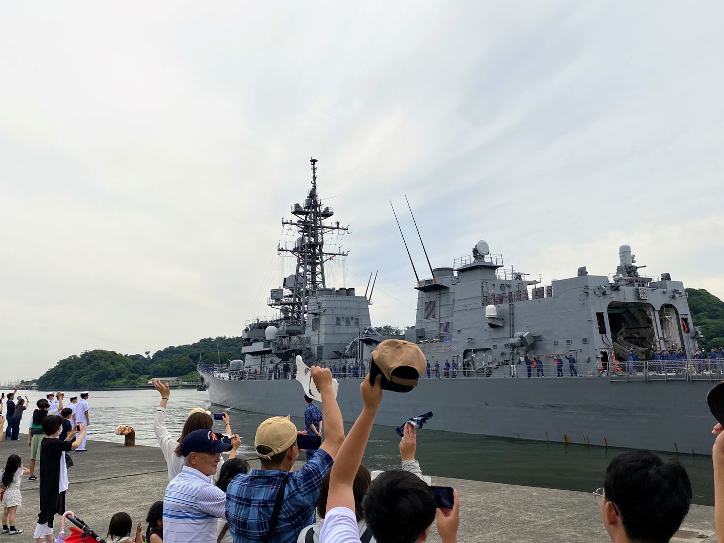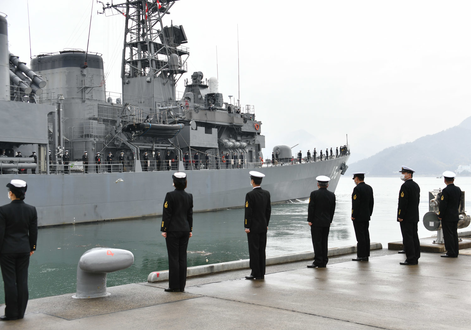 令和5年6月3日、海自横須賀基地船越地区において、護衛艦「いかづち」艦長・田中宏明2等海佐を指揮官とする第45次派遣海賊対処水上部隊(中東地域における情報収集活動を兼務)の出港行事が行われた。