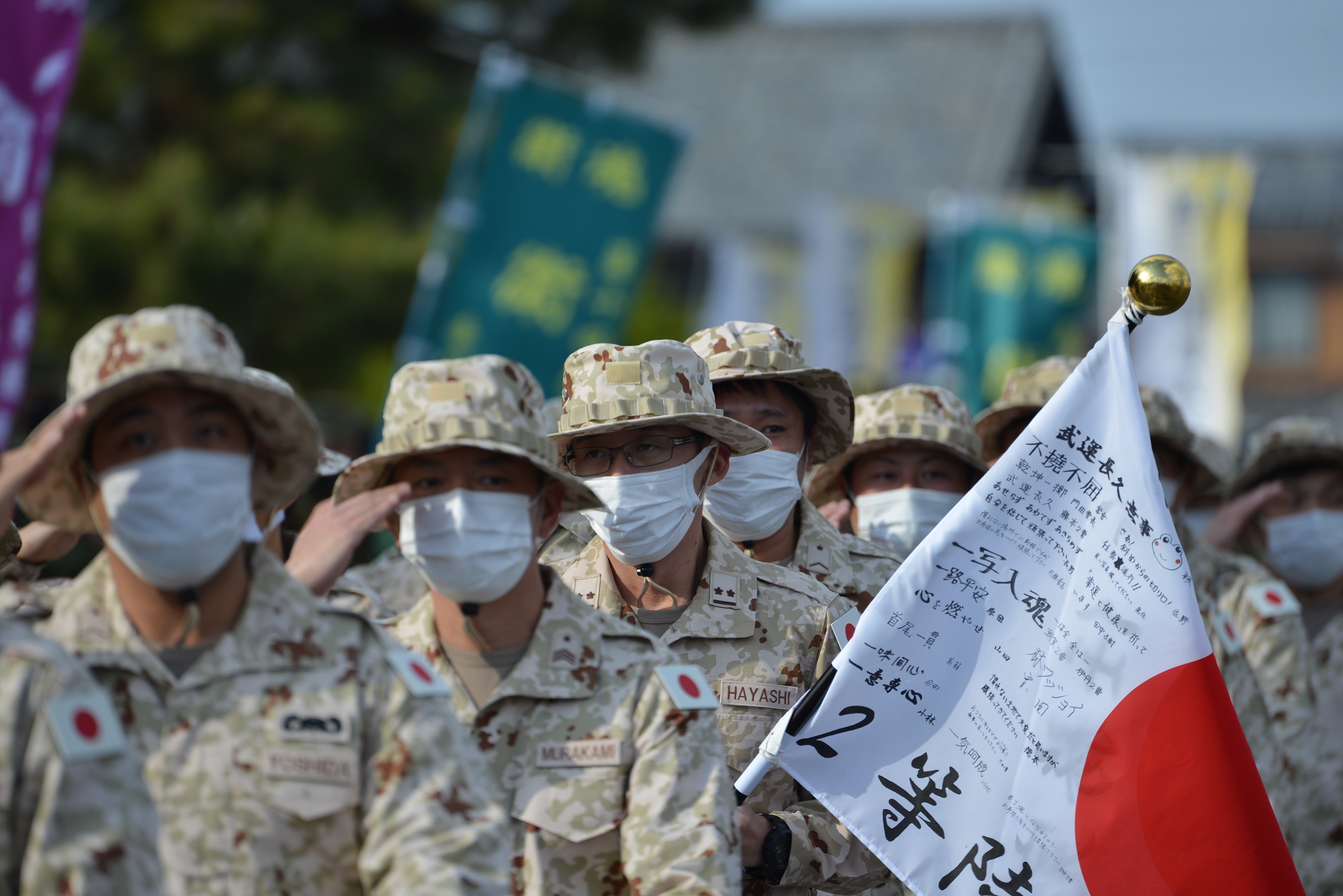 式典で、執行者の兒玉師団長は、「ワンチームと感謝の気持ち」を要望、出発する79名は、それぞれ現地で活動するにあたっての抱負を元気に力強く述べた。