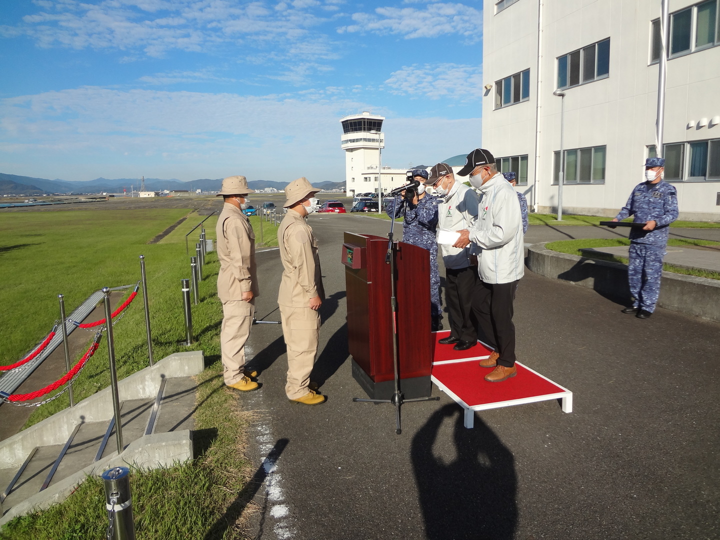 ソマリア沖・アデン湾に向け出国した。これに先立ち、派遣隊員が新型コロナウイルス感染防止のための待機中であった9月22日、青森県隊友会(会長・堀内直樹)小笠原治仁三八地域支部長は、第2航空群司令部を訪問し、任務の完遂と無事の帰国を願い、隊友会からの激励品を第2航空群司令に託した。