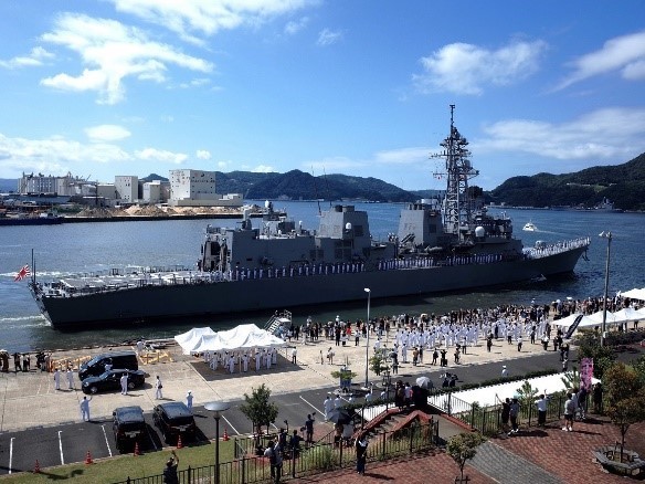 9月27日、第46次派遣海賊対処行動水上部隊(情報収集活動兼務)として派遣される護衛艦「あけぼの」の出国行事が、佐世保基地倉島岸壁で行われた。