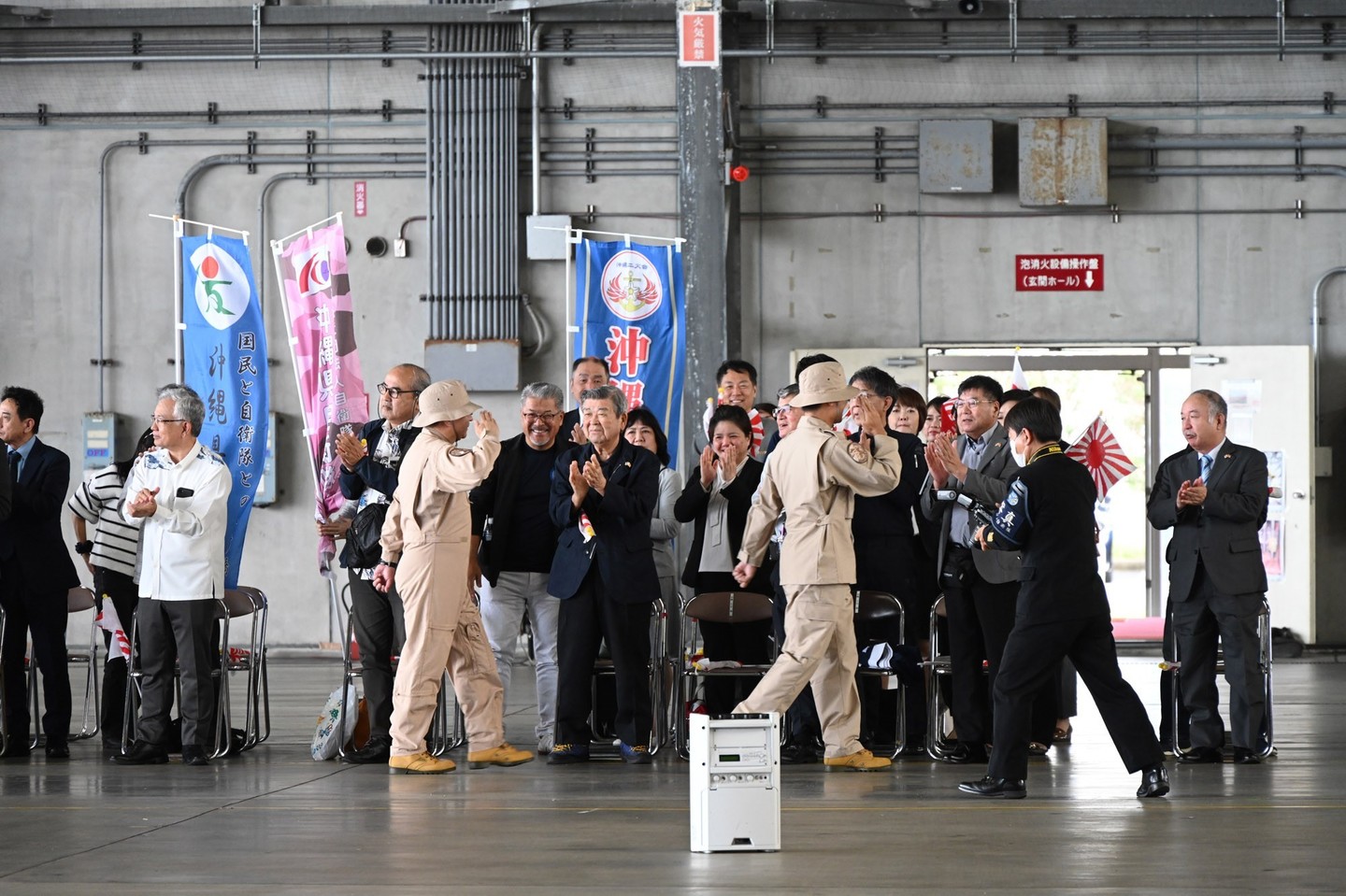 式典には、第5航空群の隊員や派遣隊員のご家族・協力団体約80名(沖縄県隊友会6名)が参加、派遣される約60名の隊員を盛大に見送った。隊員はこの後那覇空港からチャーター便で出国した。