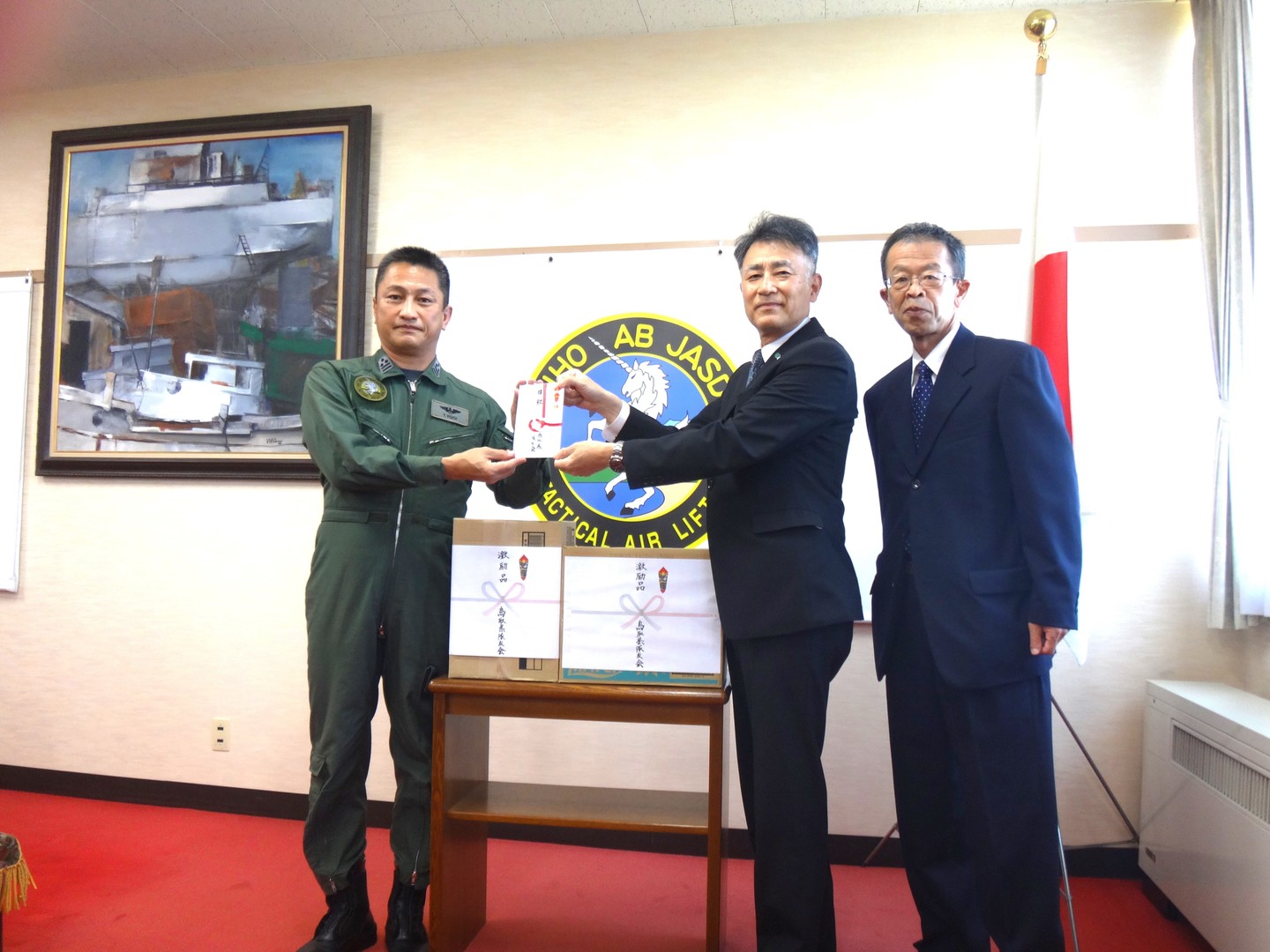 鳥取県隊友会(会長・山本洋)内田義則顧問及び西田勝造事務局長は5月23日、第3輸送航空隊司令(兼ねて美保基地司令)・與儀孝1等空佐を表敬し、ウクライナ装備品輸送任務部隊に対し、隊友会を代表し、栄養補助食品などの激励品を贈呈した。激励品贈呈にあたり、與儀司令は、任務の重要性、継続性について言及され、改めて、あらゆる任務にまい進する部隊の力強さを感じた。