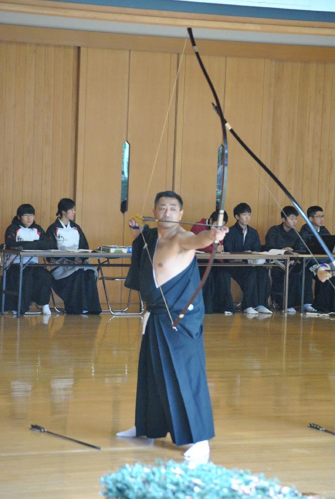 今年は、宮内道廣範士八段(三重)が隊友(称号の部)で優勝、豪快かつ切れのある射で選手及び大会関係者を魅了するなど充実した1日となった。