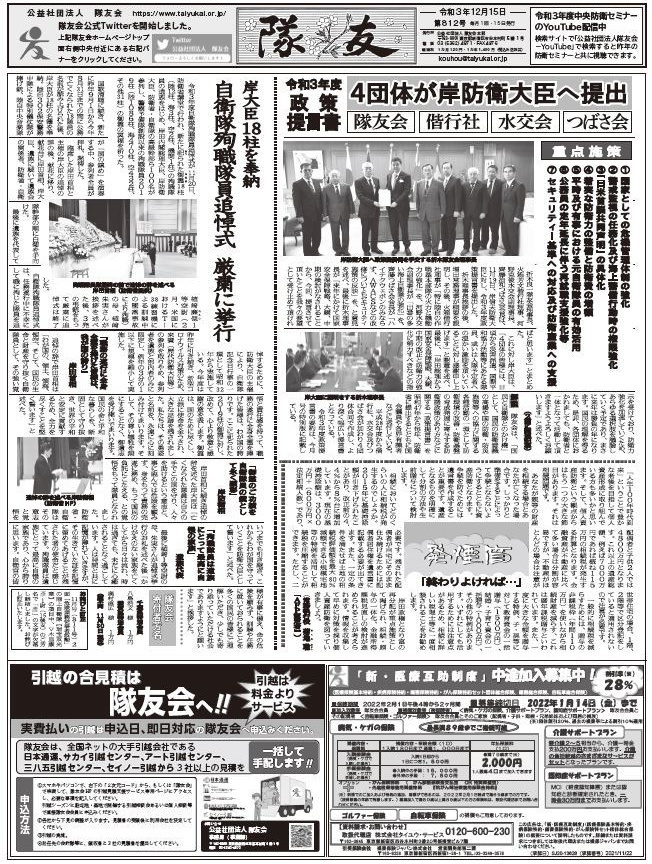 ※「隊友」紙の購読申込みは、隊友会本部(03-5362-4871)まで。