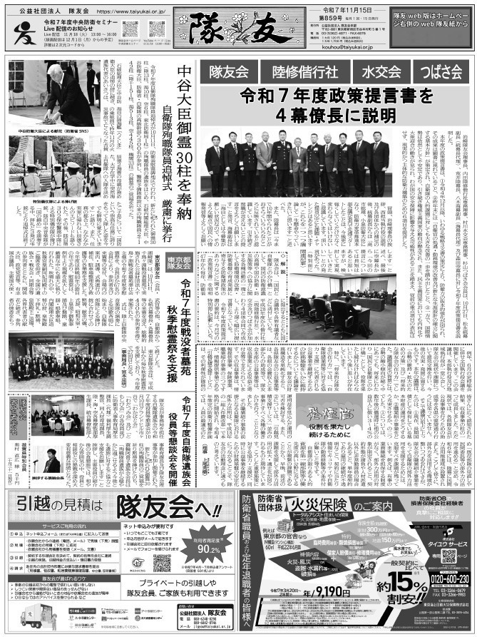 - ○東京都隊友会 令和7年度戦没者墓苑秋季慰霊祭を支援