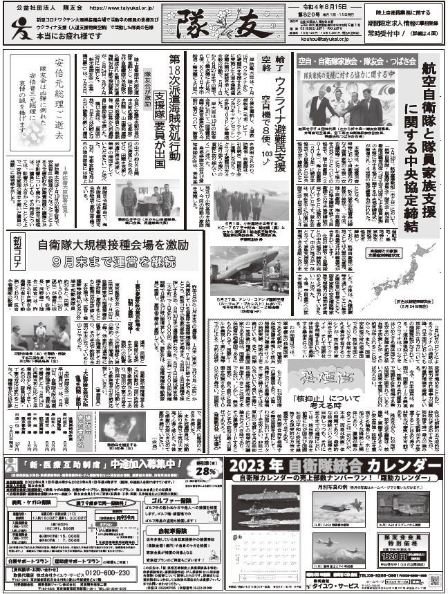 ※「隊友」紙の購読申込みは、隊友会本部(03-5362-4871)まで。