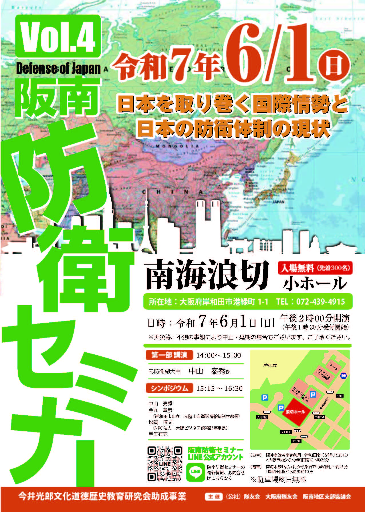阪南防衛セミナーVol.4 大阪府隊友会 2025.04.282025.10.21 阪南防衛セミナーVol.4 開催日時:2025年6月1日(日)14時開演 開催場所:南海浪切ホール(岸和田市港緑町1-1) 先着300名・入場無料 PDFはこちら