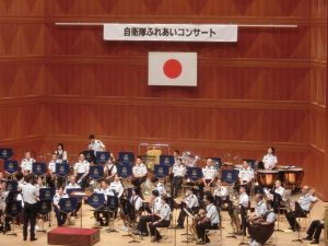この「ふれあいコンサート」は平成30年に、自衛隊家族会の山崎氏から、募集環境の改善と募集協力のため、市内の各中学校吹奏楽部と自衛隊の音楽隊がコラボしたコンサートを開催し、生徒や家族、卒業生そして近隣住民の方々に、自衛隊をより身近に感じてもらってはとの提案があり、隊友会としても協賛団体として協力することとした。