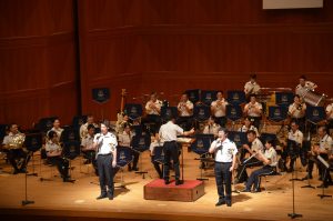 以来、コロナで中止の2回を除き5回にわたって、第13音楽隊と海上自衛隊呉音楽隊が交代でコンサートを担ってきたが、担当音楽隊は、多忙な中、年度当初から数度にわたって中学校に出向き演奏指導に当たるなど、生徒たちや学校関係者とのコミュニケーションに努めている。