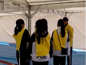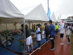 群馬県隊友会は令和7年11月3日(月)文化の日、時より雨及び強風の寒い初秋の中 群馬県、前橋市、高崎市、上毛新聞社、群馬陸上競技会主催「第35回ぐんまマラソン」に、「手荷物預かり」ボランティアとして76名の会員が支援しました。