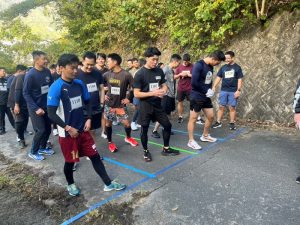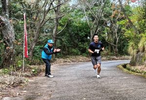 当日はこの時期一番の冷え込みでしたが、天候に恵まれ、競技中盤ころには気温15度くらいになり、汗だくになる競技者もいてそれぞれが山頂付近のゴールを目指し健闘しました。