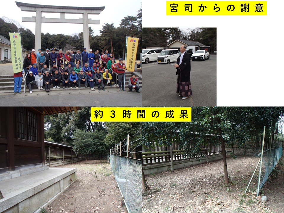 群馬県隊友会では、2月7日(土)8時30分から12時頃まで群馬県護国神社の清掃奉仕活動を実施しました。