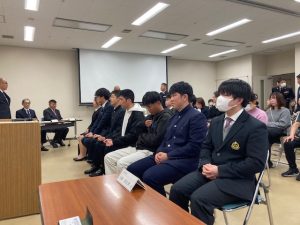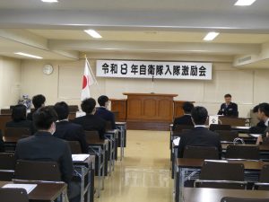 福山市出身の自衛隊入隊入校予定者の激励会が、福山防衛協会の主催により、令和8年3月7日、福山商工会議所において行われ、入隊予定者15名が出席した。