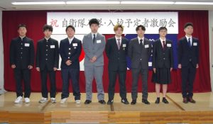 激励会には、入隊・入校予定者、防大1名(女性)他10名、予定者のご家族及び家族会安佐北、安佐南各支部長他多数の関係者が参加しました。