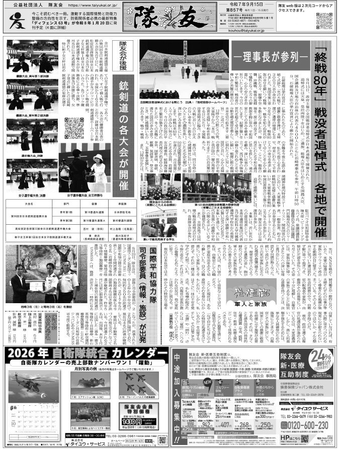 ※「隊友」紙の購読申込みは、隊友会本部(03-5362-4871)まで。