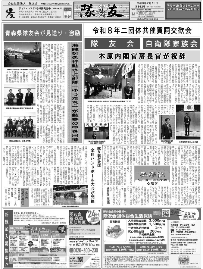 ※「隊友」紙の購読申込みは、隊友会本部(03-5362-4871)まで。