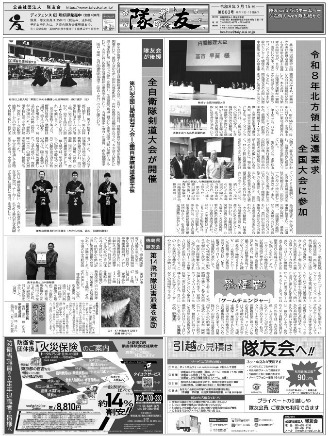 ※「隊友」紙の購読申込みは、隊友会本部(03-5362-4871)まで。