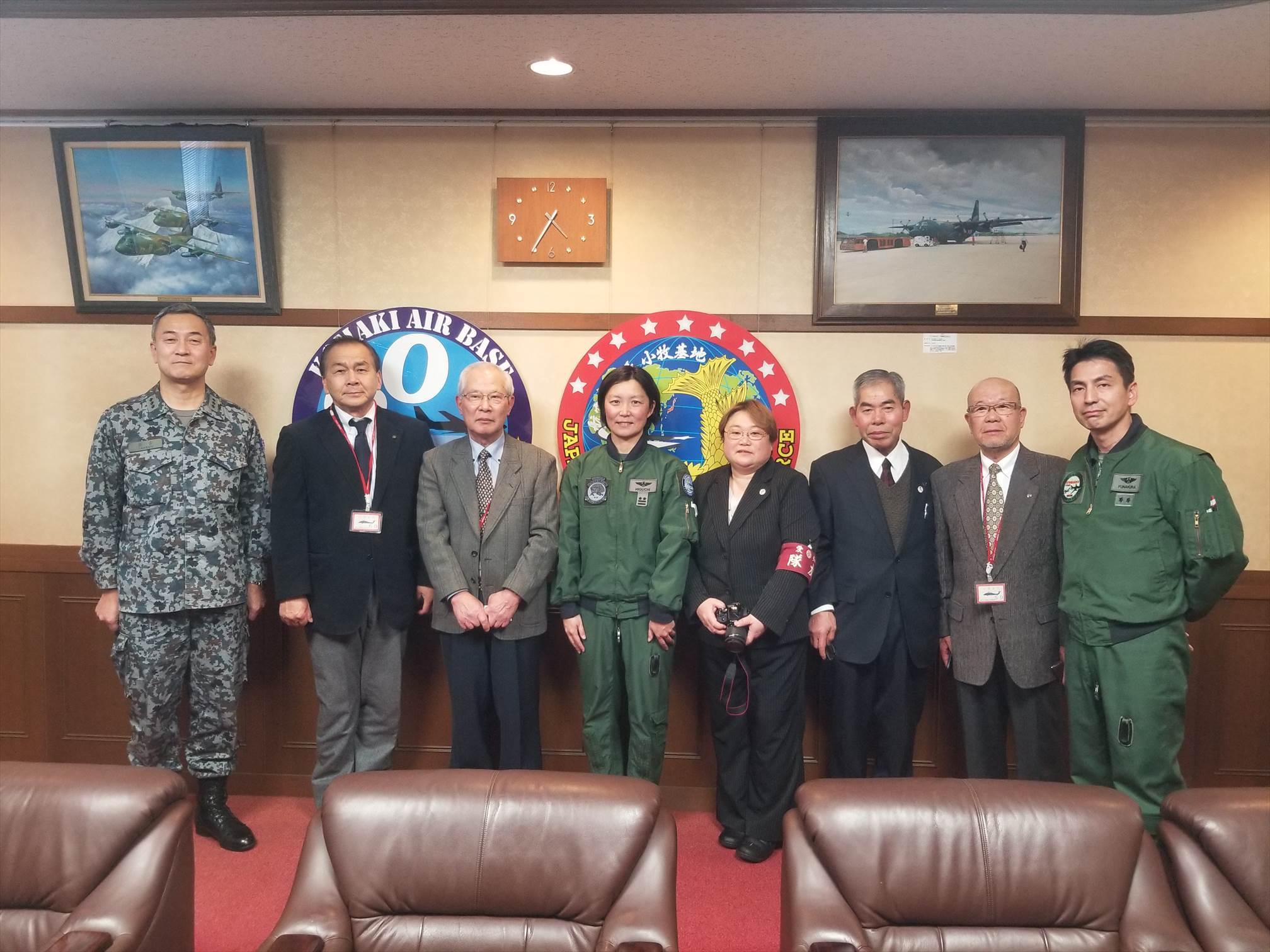 帰国前の16日、千歳地方隊友会(会長・菊地伯)の寺澤博・副会長及び斗賀山信美・事務局長は隊本部を訪問し、特別輸送航空隊司令・山田眞也1空佐に隊友会からの激励品を贈呈した。隊司令からは「真っ先に激励くださり有難うございました」とのお礼の言葉があった。