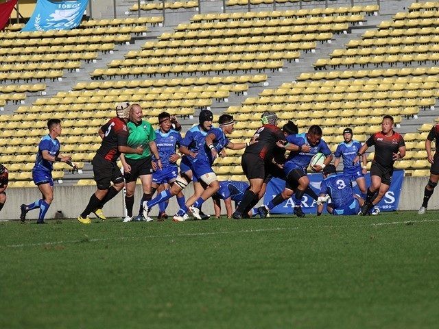 Aブロック決勝スクラム(左が船岡駐屯地チーム)